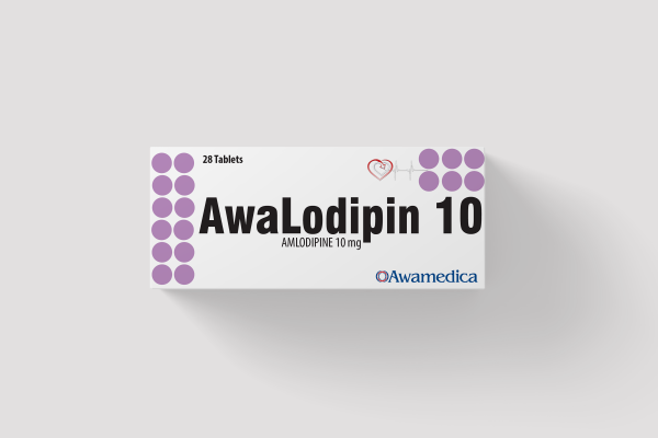 AwaLodipin 10 Each tablet contains Amlodipine Besilate BP equivalent to Amlodipine 10 mg. Each carton contains 2 blister packs of 14 round (flat), white, tablets each with a break line on one side and ‘Awa’ (Awamedica monogram) on the other side.