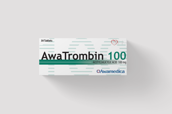 Each enteric-coated tablet contains Acetylsalicylic acid BP 100 mg. Each carton contains 3 blister packs of 10 or 2 blister packs of 15 round shape, white, biconvex, enteric-coated tablets each with a break line on one side and ‘Awa’ (Awamedica monogram) on the other side.